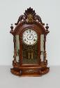 Lot 9: 1 (One) Fashion Clock, calander hand, 3 carved spindles 15" w x 6" d x 32" h,