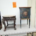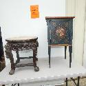 Lot 10: 1 (One) 2 Asian style tables: hand painted commode, single door 13 1/2" square x 28" h,