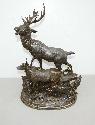Lot 11: 1 (One) Bronze statue with Elk stag, doe & baby (1 leg to be repaired)