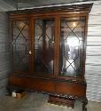 Lot 13: 1 (One) Mahogany Chinese Chippendale china cabinet, 3 doors, 3 drawers, brass pulls,