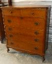 Lot 14: 1 (One) Antique English burl wood chest, 6 drawers, brass pulls, bun feet on casters,