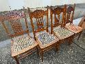 Lot 16: 1 (One) 4 oak press back side chairs, spool splats, cushion seats,