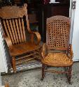 oak nursing rocking chair, cane seat & back 19" w x 18" d x 34" h, late 19th century, oak press back rocking chair (slight damage) 23" w x 20" d x 43" h, 20th century