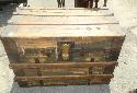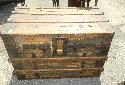 Lot 54: 1 (One) Pine & hickory metal bound wooden trunk, removable drawer, brass lock 33" w x