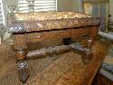 Lot 93: 1 (One) Small wood stool, carved apron, woven top, carved legs 12" w x 8" d x 8" h,