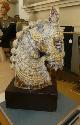Lot 94: 1 (One) Carved painted wood Trojan horse head on a pedestal (lamp base) 18" h, 20th