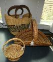Papago hand made sweet grass small basket with handle, large hand made Cherokee basket with handle, African basket made of locally sourced Ghana straw, 20th & 21st century