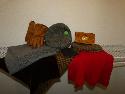 Dolce & Gabbana billfold, photo album, 2 wool Donegal Tweed hats "Kevin & Howlin", pair of leather gloves, Thinsulate, Polo wool scarf, red scarf, velvet & silk scarf, 20th century