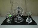 pressed & cut glass basket, footed bowl by eamon of Ireland, votive by Orrefors, candle holder, 2 crystal bowls, 20th century