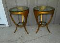 Lot 329: 1 (One) Pair of retro gold painted circular tables, beveled glass 20" round x 28" h,