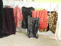 black silk skirt, pashmina, black & cream Battenburg lace dresses by Carol Little, cotton fabric jacket by Estelle, animal print swing jacket by Victor Costa