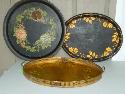 Lot 447: 1 (One) 3 large vintage metal tole trays, One (1) is signed, 20th century